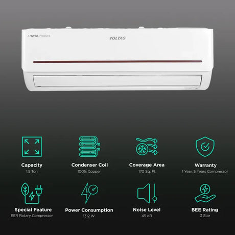 VOLTAS Adjustable Inverter AC, 1.5 Ton, 3 star- 183V Vectra Prism (OPENBOX)